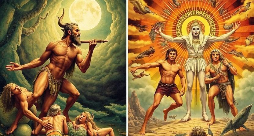 • The world was brought into existence through a series of events orchestrated by divine beings